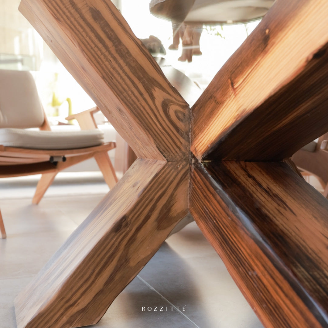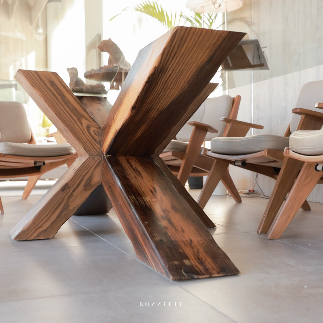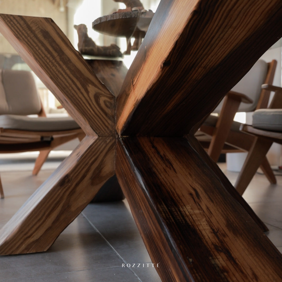 The CDM dining table by Rozzitte Furniture is a true collector's piece. Crafted entirely from solid oak wood, it boasts a unique design that sets it apart from traditional dining tables.